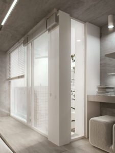 در دل یک آپارتمان کوچک، با محدودیتهای ساخت، روابط فضایی بازتعریف شدهاند تا متناسب با الگوی سیال زندگی و کار کاربر، انعطافپذیری تازهای بیافرینند.